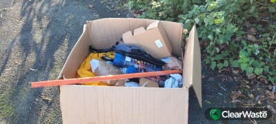 A box of rubbish has been left at Boothroyden Bridge containing various household stuff & No2 cannister tanks. Its too heavy for me to take to main rd for collection