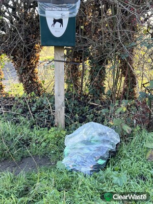 Big Bag of dog poop right by the dog poop bin