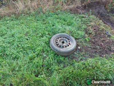 Car wheel/tyre left on grass verge