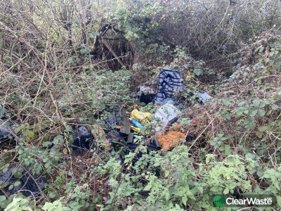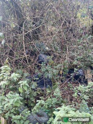 There is a small lay-by on the left going from Maidenhead to Bisham. There are a lot of black bin bags hidden behind a log.