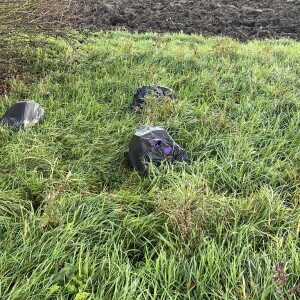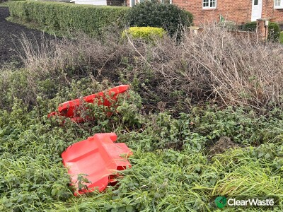 Broken bollards left behind after road closures Left hand verge when travelling south, close to houses on corner