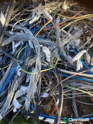 Coils of wire and the plastic sheaths from cables plus a tyre and several pieces of metal