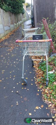 Two shopping trollies, Sainsbury's and Mark's dumped at end of alleyway between Elm Drive and London Hill, Rayleigh