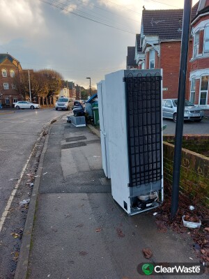 Flytipping hot-spot outside no 45, always freezers sofas and large objects blocking the pavement here. Today there are 3 upright fridge freezers a small sofa and a coffee table. Needs a camera in this location as its constant!
