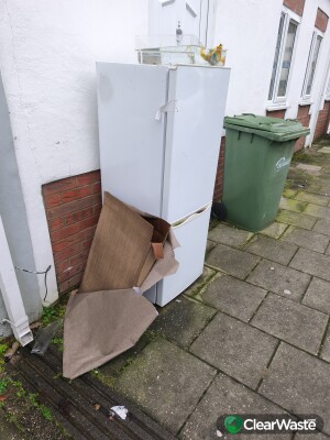 Refrigerated and hob dumped on pavement for months on end been reported a few times and still nothing done it is outside the door of the flat that is responsible for it just because there Asian they should not be able to get away with it all the time