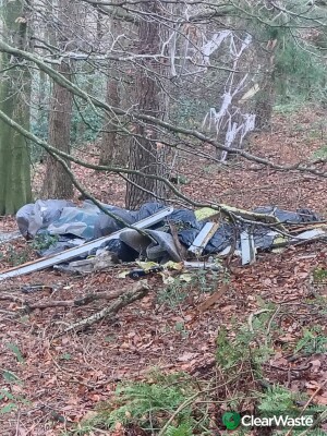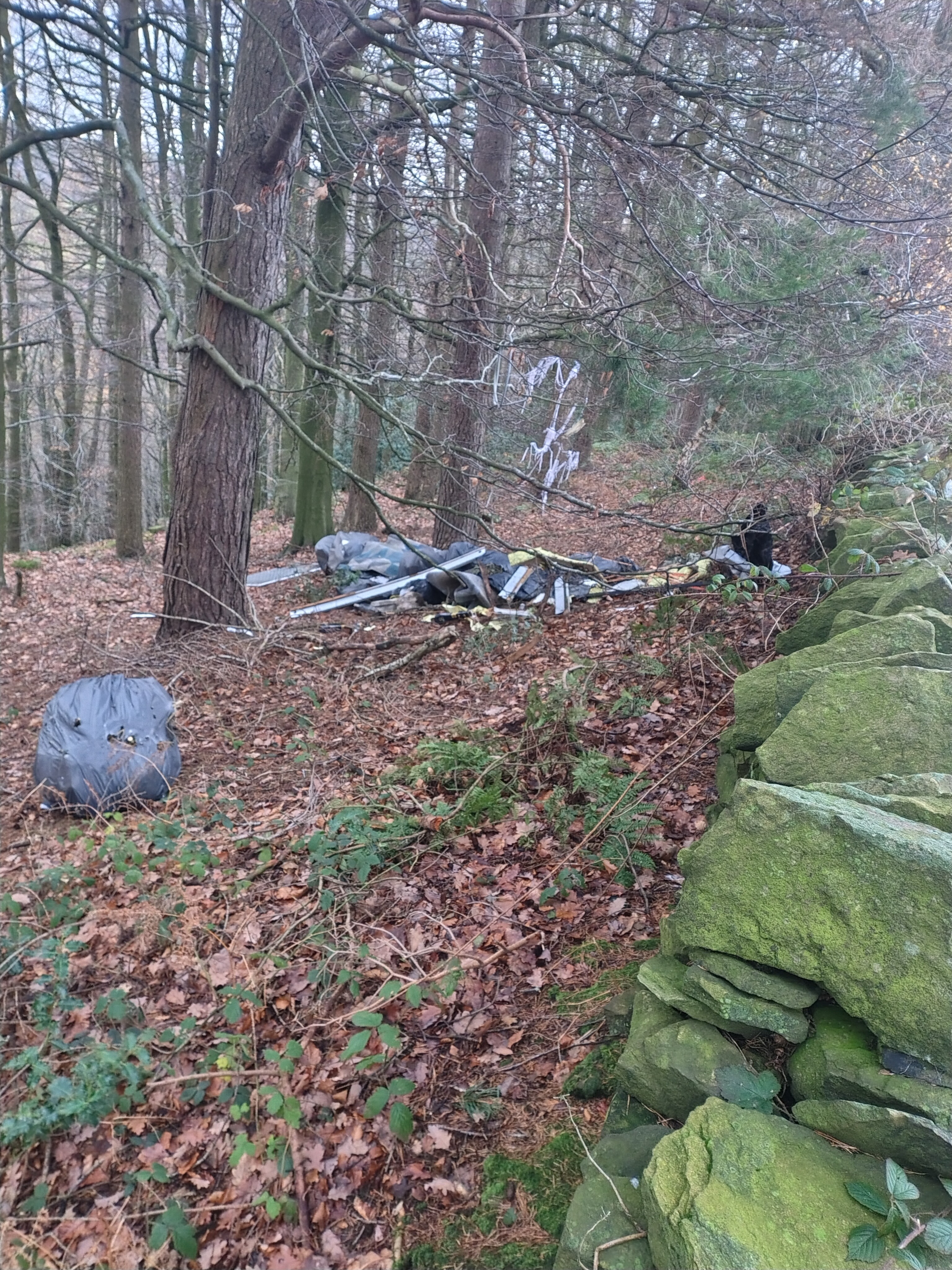 Big piles of rubbish in black bin liners, a mattress, some wiring. This is a hazard to all the wildlife. It's been there ages there since at least October could be stolen property or anything reported several times