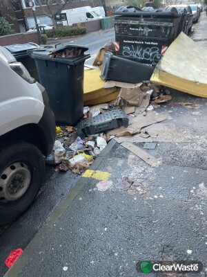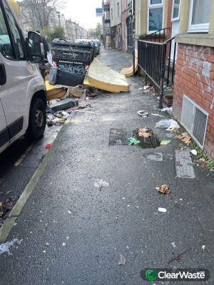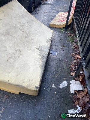 Foam Mattresses and other fly tipping around the bin area, blocking footpath along City Road, stokes croft end.