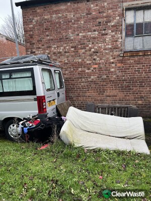 A mattress, sofa and unknown litter bins (full) located by Tyres R Us garage.