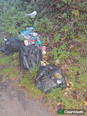 Black bags of household waste. Previously reported. Wiltshire Council and MOD should be ashamed.