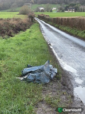 Builders Waste, bags of roof tiles on roadside verge. W3W lens.hothouse.mailbox