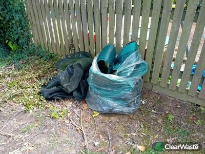 In Old Quarry Close, Rubery. Remains of a trampoline and two bags of cement. Reported at least 6 times! It's been there since April.