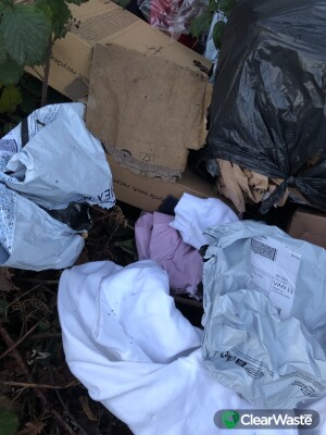 huge amount of waste dumped in two lots. there are clearly marked addresses on the rubbish if council want to prosecute. Also in the next layby further along on the right before tollard green crossroads is more rubbish dumped in bags.