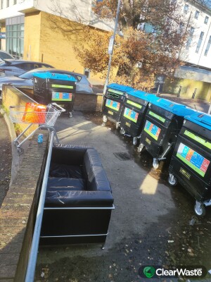 sofa, household waste aroundrecycling point