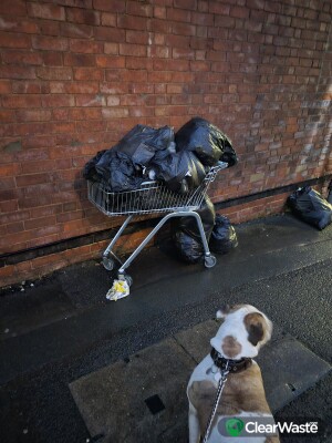 Bin bags in a trolly on the footpath