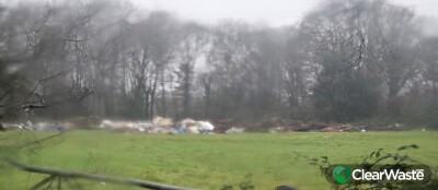 Large load of waste dumped in a field off Holt road, the end nearest to Ringwood Road.