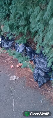 Loads of black bags under conifers about 20m from the last lot I reported