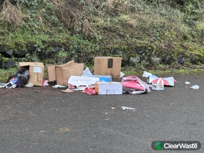 Empty Amazon boxes with name and address. Empty boxes and packaging with Christmas bags.