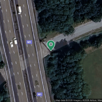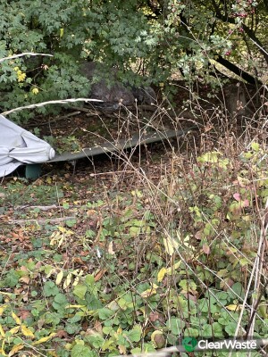 Washing machine and asbestos sheeting which is beneath bridge. The photo is not showing washer? However it is one metre from motorway bridge which runs over Lutterworth rd