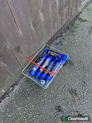 Discarded nitrous oxide containers on Armscott Road, Coventry. Rear of the Devonshire Arms public house.