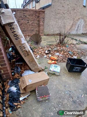 Loads of rubbish and more being added as shown best on the video..found as shown in the photos of the pathway on Amanda close between houses that leads to the only bus stop on the estate