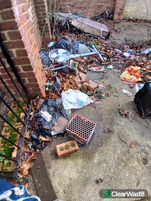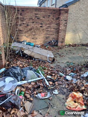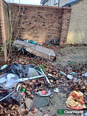 Various items including power tools ,an electric fan and a large item in a box.. Located on the pathway as shown in the photo to Amanda Close near the only bus stop on the estate