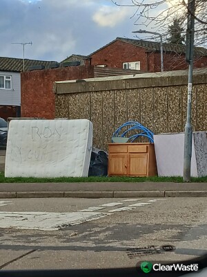 Disccarded mattresses.chairs .large cupboard.tubing and other stuff Someone has written an extremely degoratory ' comment' on the mattress..has local cctv captured it? On roundabout at junction of limes avenue and amanda close