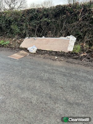 What looks like plasterboard left on the side of the road. My daughter was this being left on 19/1/26. Van with 2 men stopped and left rubbish on side the road before driving off