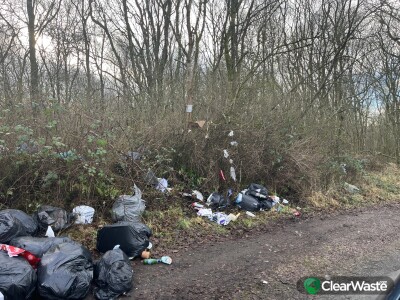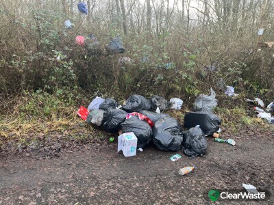 A load of household rubbish been dumped in passing place on Millcroft Road. In black sack and some loose. A few bags hanging from trees. An absolute disgrace