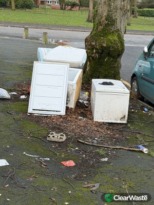 II have already reported this to BCC 3 previous times, first one in July 2025. Initially it was 2 fridges but has been added to with 3 mattresses and gas bottles. Can be found by the first tree on the right coming up Yewtree Avenue.