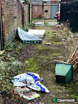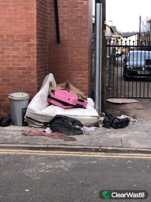 Mattresses and old blankets and suitcase dumped at the bottom of Roberts Street for weeks (both front and back ). School children and parents having to pass it each school day.