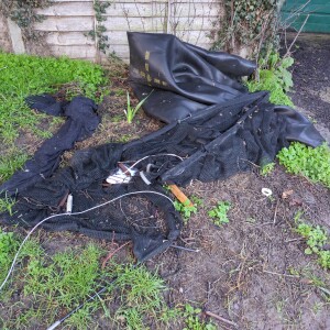 Old plastic sun lounger and bits and pieces near the entrance to the Town Woods