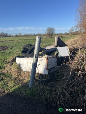 White goods, tyres, and a sofa, just inside a farmers Gateway