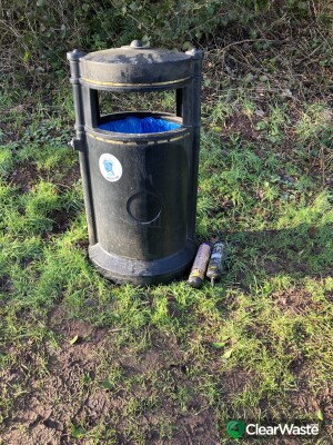 Two nitrous oxide canisters. By the bins in the lay-by between Dark Lane and Farley Lane.