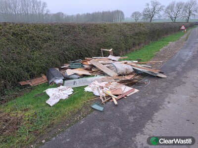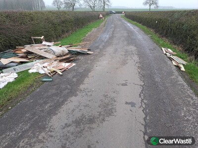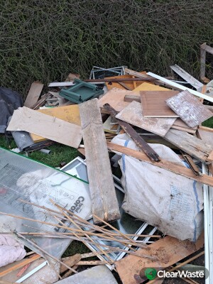 Shower glass screens, garden shed waste, plastic chairs, wood. Tipped in daylight whilst road is closed off for severn trent water.