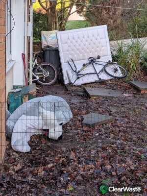 Mattress, bed frame, bike, microwave, rubbish bags, there since 2025 at 5 ash drive measham de12