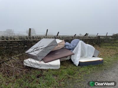 Old beds and matresses . From Harrogate road turn on to Old lane towards Bramhope, Leeds. Pass Occupation Lane on your right. The tip is approx 100m -200 m on the left just off the road on a side lane into a field.