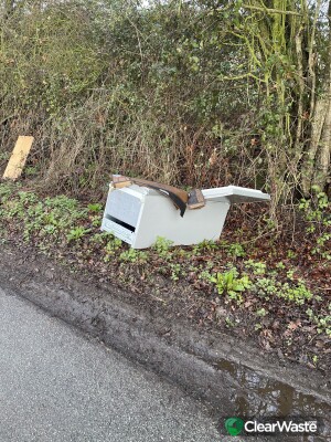 In ditch spread alongside road. Includes fridge, washing machine, garden furniture