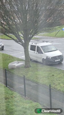Sofa dumped at the side of the road on the grass verge opposite Fullbrook Grove on Gregory Avenue outside some flats