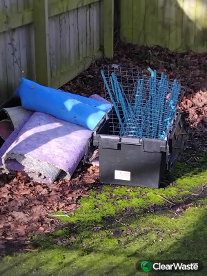 Carpets and plastic rubbish in the land next to 31 dovenby road, clifton.