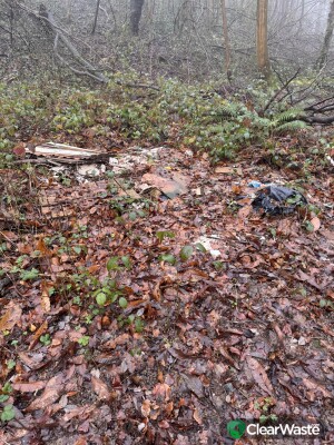 Waste dumped by side of footpath by some scumbag. You will need to go up the path 100 yards into woodland path to see it.