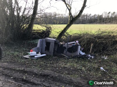 Old sofas and kids toys been there about eight weeks rubbish attracts more rubbish!!