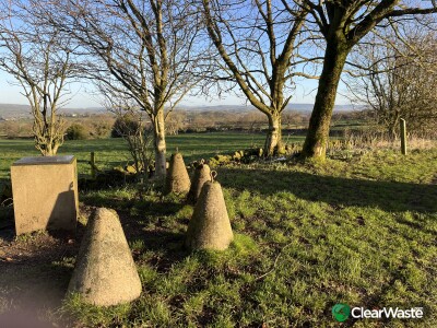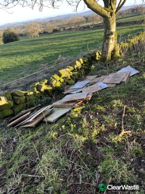 Builders waste. Mostly plywood. Located on Knowsley Common at the viewpoint. Knowsley Common, Tompkin Lane. w3w.deposits.showcases.impose.