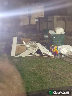 Outside Beatrice House fly tip ie Broken cupboards waldrobe