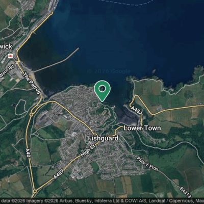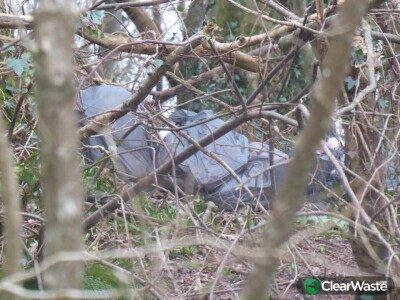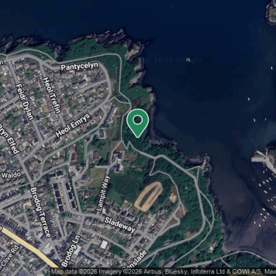 Black bags down the embankment on the coast path, off the path overlooking Lower Town. Where there is a tree with bird feeders on it, it's to the left of that.