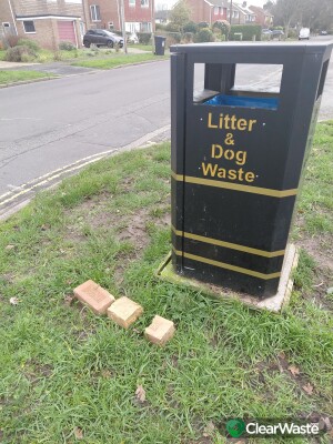 Numerous broken bricks dumped by bins and other locations along Oakmount Rd, Hill crest Avenue and Bodycoates Rd Chandlers Ford.