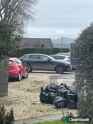 Lots of black bags left under Darkfield way road sign. Bags still here and cats have become interested in the waste lots of litter blowing around also.