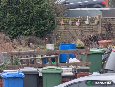 Outside 113 Centre Parade. Furniture. Household waste. Garden waste. Car parts. Toys. Buckets. All dumped in the front of the property. Rats and mice have been spotted.