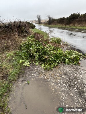Garden waste in lay-by at the bottom of Shillito wood on far lane
