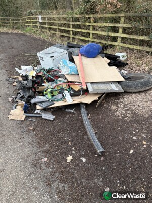 Assorted pile of rubbish not far from uffmore wood car park entrance.