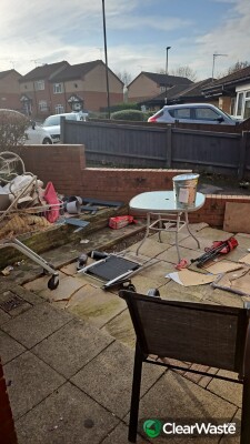 52 beckton ave has been asked by Places for People to remove said rubbish from outside her house she has taken it ALL AND DUMPED it in the woods behind. Doors shopping trolleys all sorts of damaging stuff. Have reported to council nothing done.